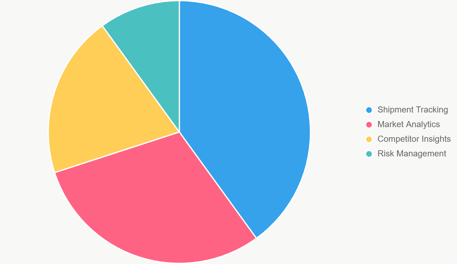 We aggregate data from customs records, satellite tracking, and partner APIs for unparalleled accuracy. (Chart: Breakdown of our key service areas)